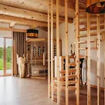 The 6-room Osada Lesna - Domki Z Basenem Villa is situated about 10 minutes by car from Amfiteatr and features a heated pool with a sauna.